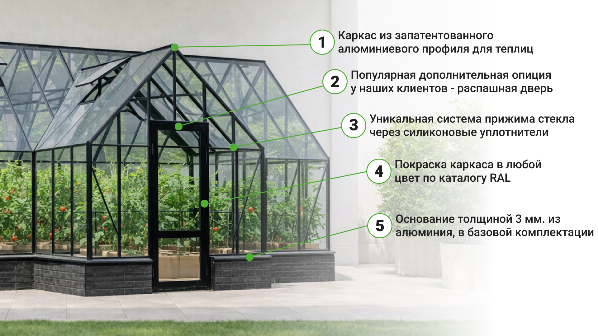 • Теплица botanik T Style 45 Maximum с тамбуром Standard под стекло, ширина 3,6 м. (калькулятор)
