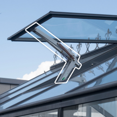 - Ручные жалюзийные форточки в торец позволяют регулировать направление и объём воздуха, благодаря чему вы создаёте гибкую систему вентиляции и сохраняете аккуратную стеклянную геометрию фасада.